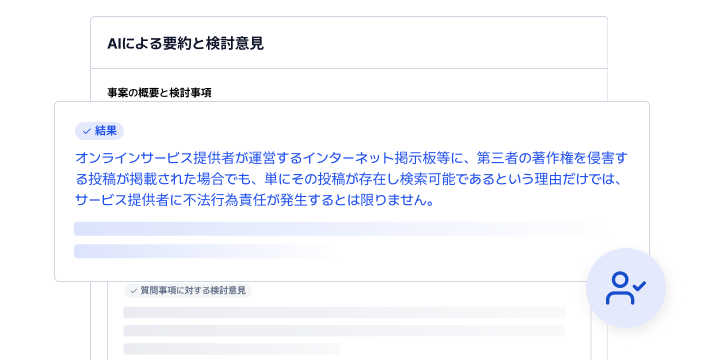 相談内容をAIが要約し、類似の判例等を確認し提案を作成